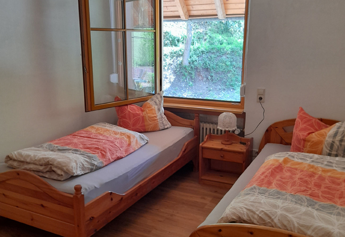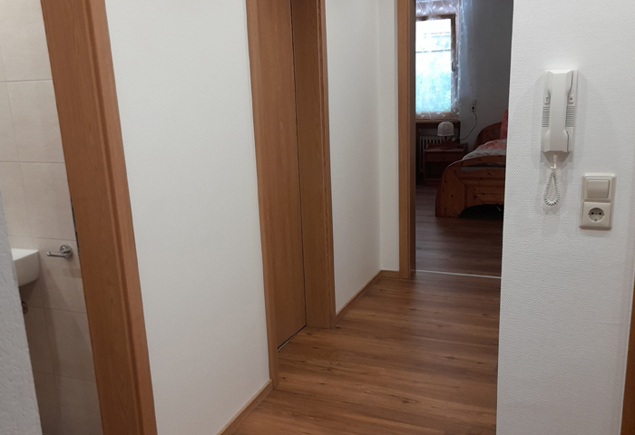 Vom Flur der Ferienwohnung kommt man in das zweite Schlafzimmer mit 2 separaten Betten.